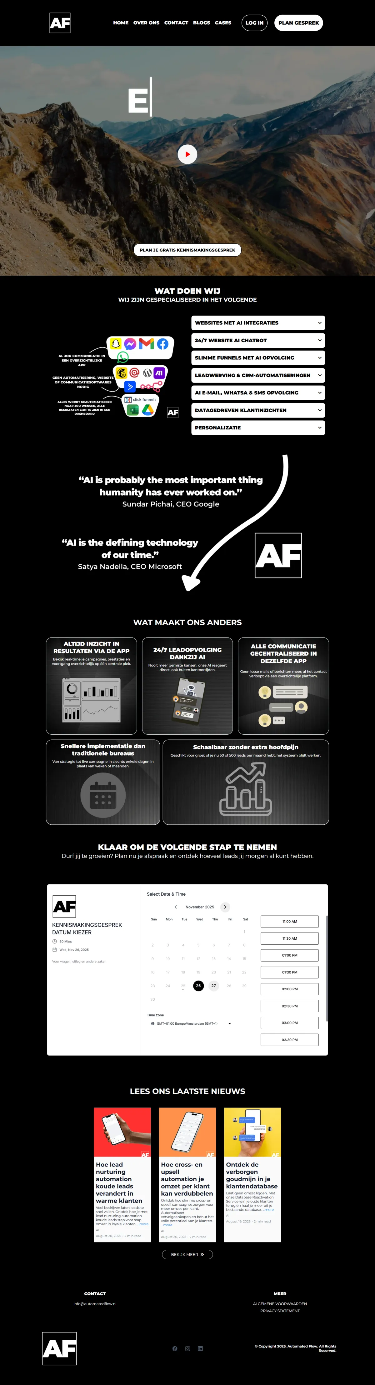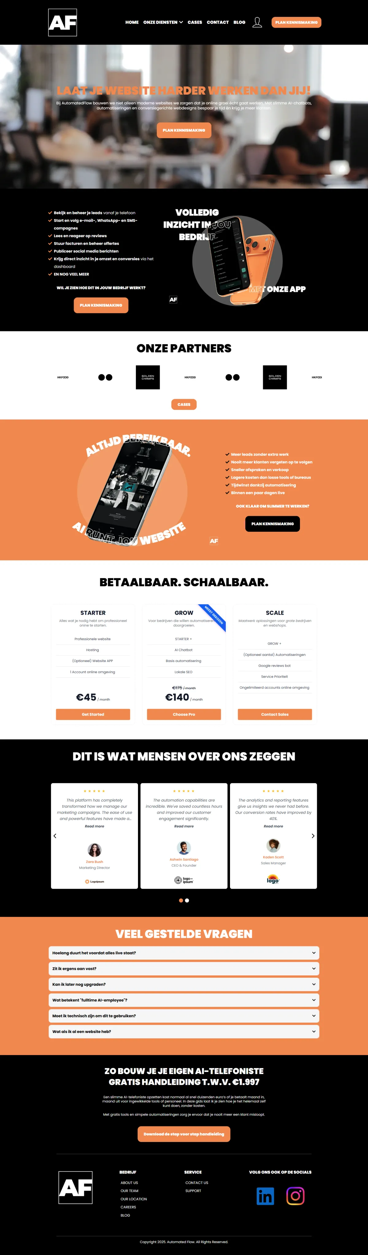 Automated Flow wilde een website die energie uitstraalt, bezoekers activeert en vertrouwen opwekt. Geen informatief platform, maar een digitale businesspartner vanaf het eerste moment dat iemand op de site landt.